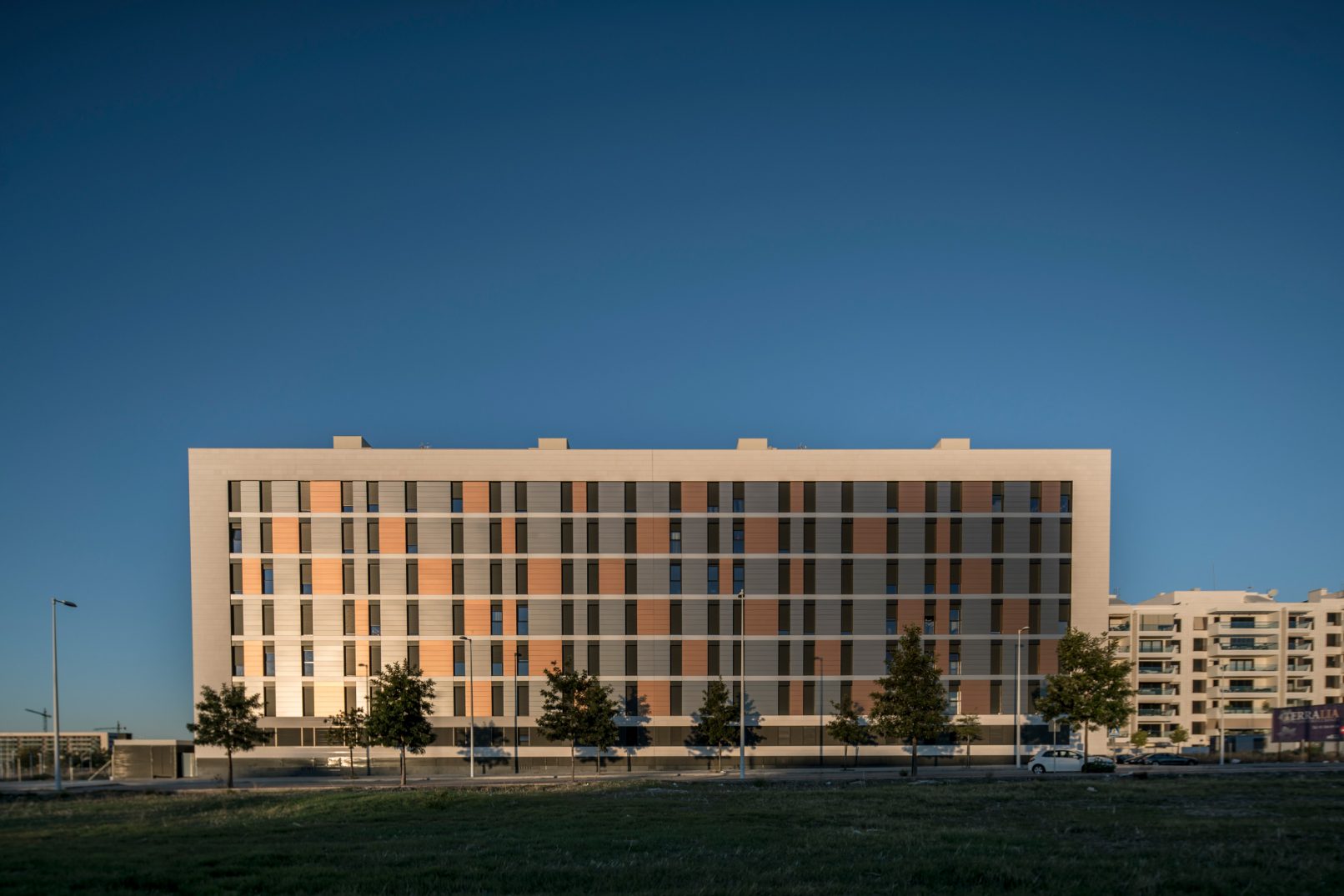 El ancho de crujía establecido permite la definición de una estructura eficiente que a su vez permite una optimización en el número de plazas de aparcamiento en la planta bajo rasante.